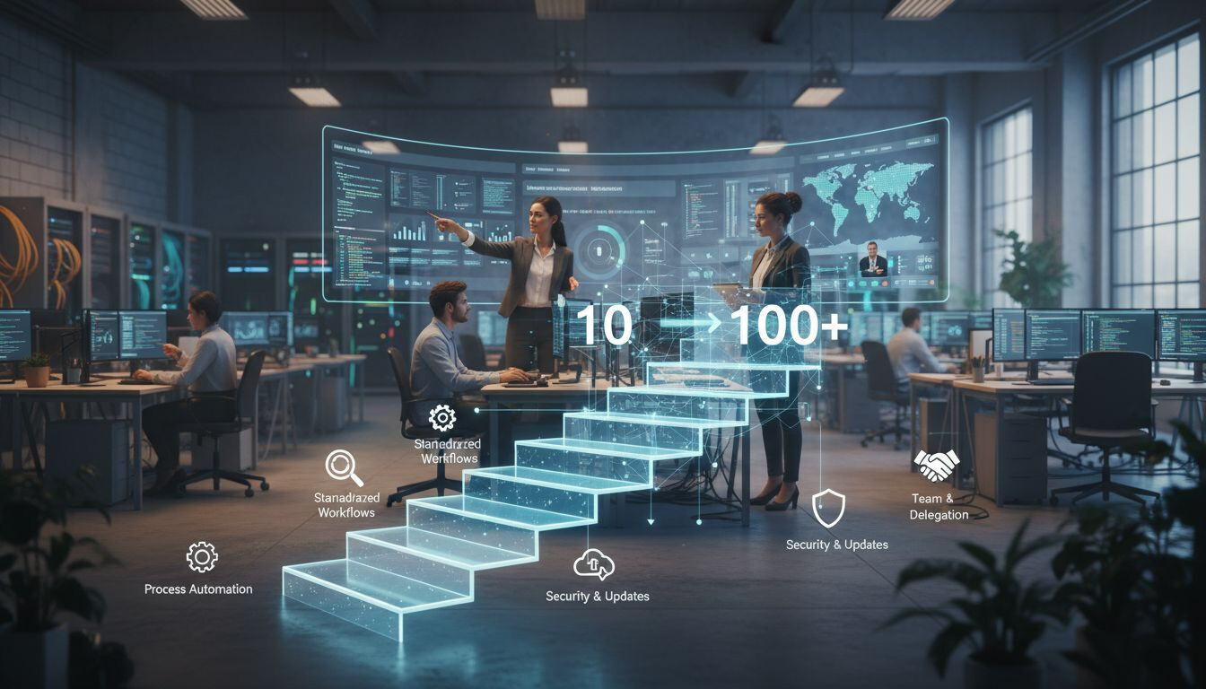 Este plan te guía desde 10 a 100+ sitios sin perder rendimiento ni calidad: